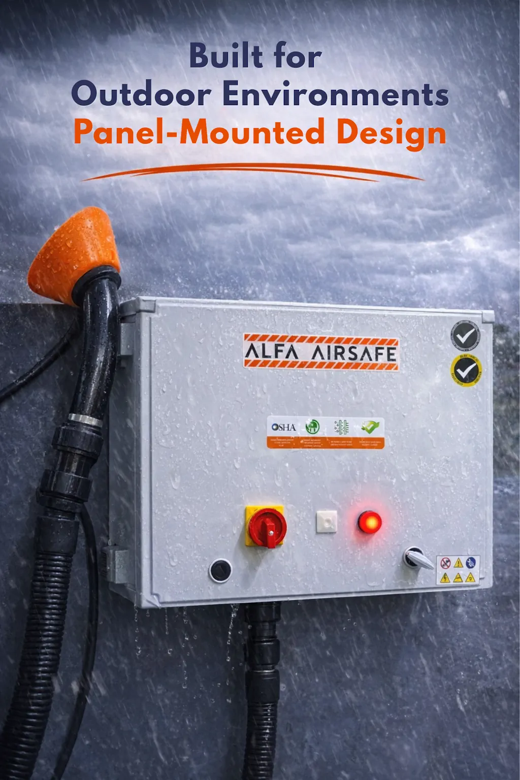 ALFA AIRSAFE produces 2400 L/min oil-free air at 0.2 bar pressure in compliance with OSHA standards. Therefore, it does not pose a danger when air is blown directly onto personnel clothing or skin.